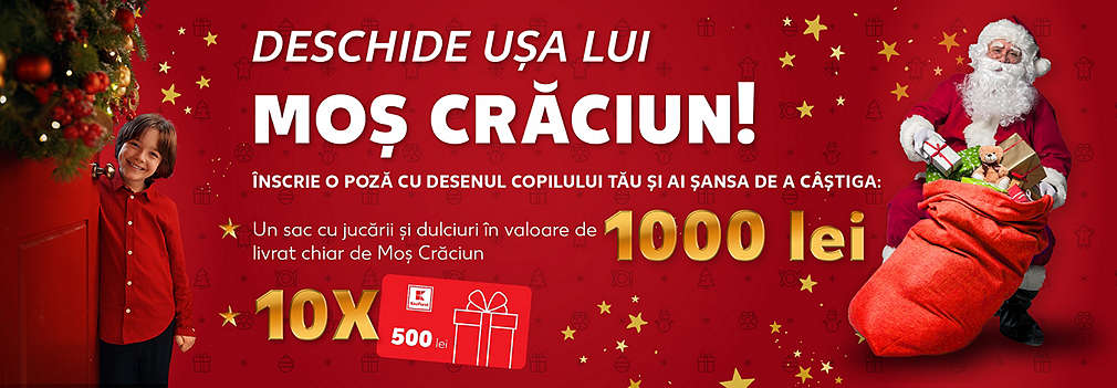 - Unul din cele 10 vochere de cumpărături Kaufland, în valoare de 500 de lei.