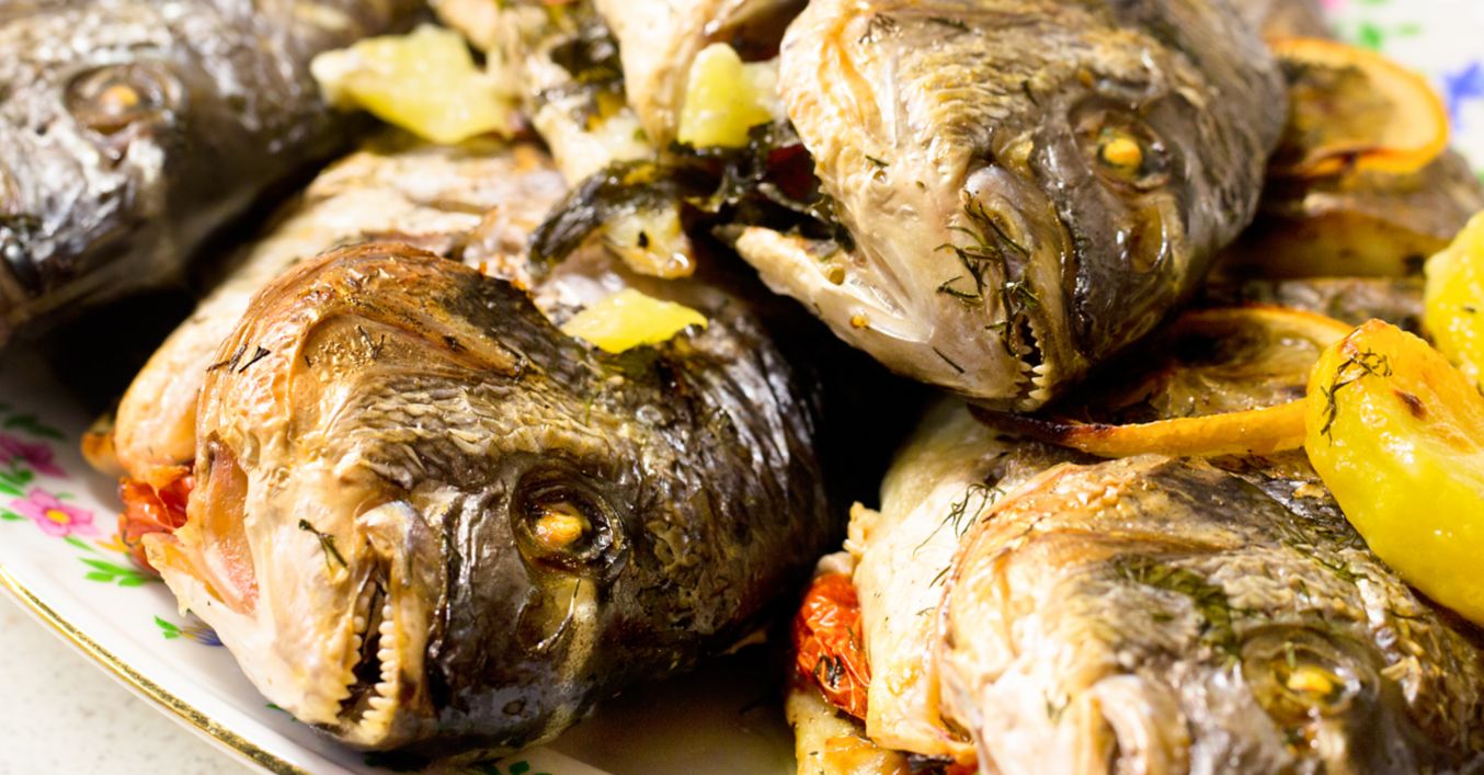 Se pun în tavă, se adaugă cartofii tăiați cuburi și o lămâie tăiată rondele. Se presară totul cu sare și se stropește cu vin alb.