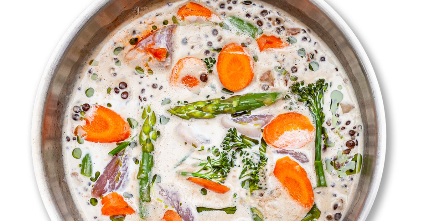 În ceea ce privește sosul, se ia o crăticioară și se pune făina cu puțin unt la foc mic. Nu se rumenesc, este suficient să se sfârâie un pic. Se amestecă constant și se stinge cu smântână lichidă rece. Dacă se fac cocoloașe nu este nici o problemă – se ia de pe foc și se amestecă viguros adăugând treptat 2-4 polonice din zeama de la mâncare. În final se desface frumos și devine un sos alb gros în care se adaugă gălbenușuri crude și se mai lasă la gătit pentru câteva minute.