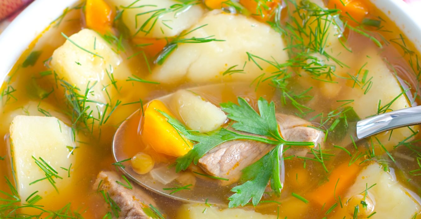 Se taie pulpa de vită în bucăți mici. Se fierb 2 ore în 2 litri de apă. După 2 ore se adaugă morcovii, ceapa și ardeiul tocate mărunt.