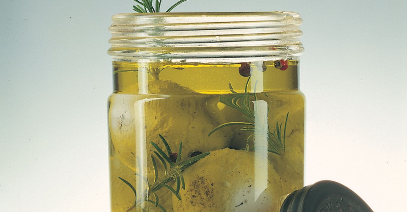 Se amestecă bine uleiul de măsline cu cel de nucă. Se toarnă peste brânză, până când e complet acoperită. Se închid bine borcanele și se așază în frigider.