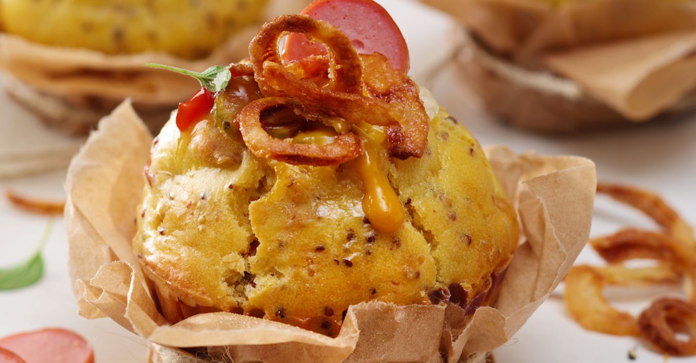 Picură pe brioșe muștar, maioneză și ketchup, așază deasupra castraveții, restul de ceapă prăjită și felii de crenvurști și servește.