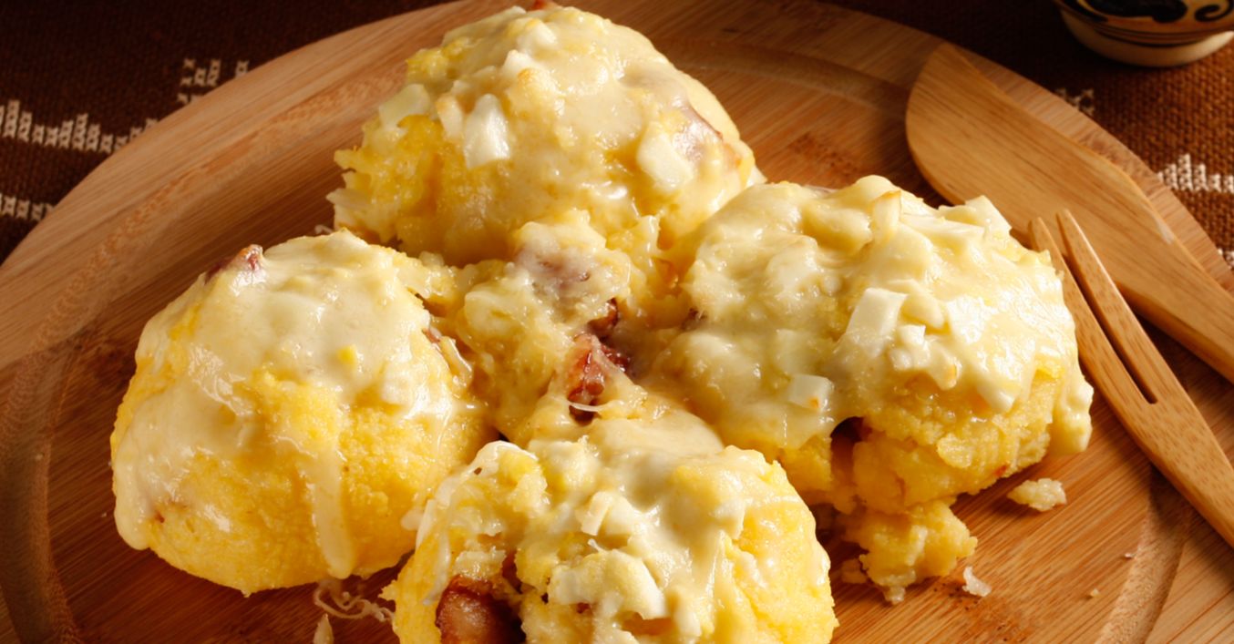 Fierbi 3 ouă tari, le cureţi de coajă şi le tai mărunt. Tai în bucăţi costiţa şi cârnaţii, pe care le rumenești în ulei încins. Iei vasul de pe foc, presari 100 g caşcaval şi amesteci totul cu ouăle fierte.
