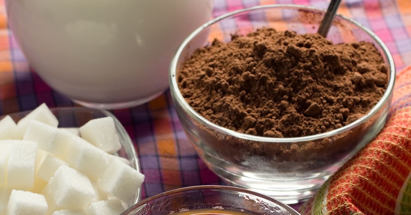Se folosesc două cești. Se pune o linguriță de cacao și un praf de scorțișoară în fiecare. Se adaugă o lingură de lapte fierbinte și se freacă până se obține o cremă.