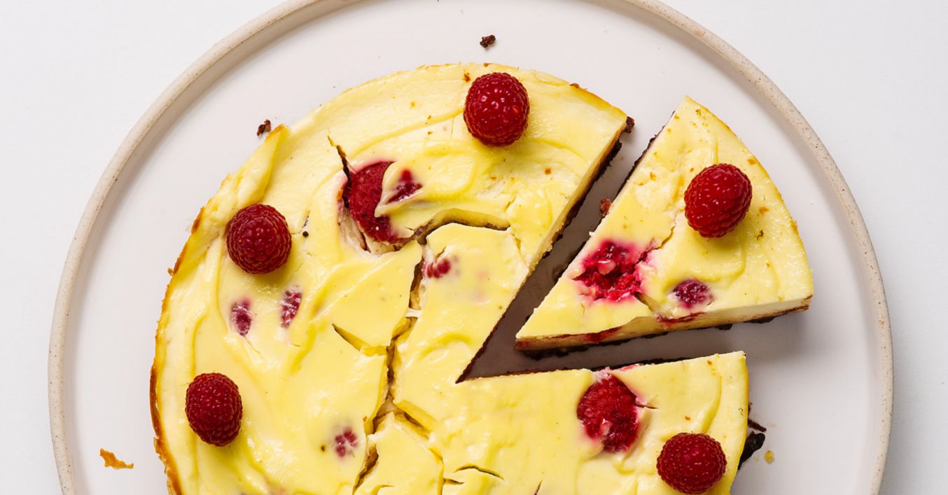 Lăsa cheesecake-ul să se răcească și servește-l decorat cu zmeură.