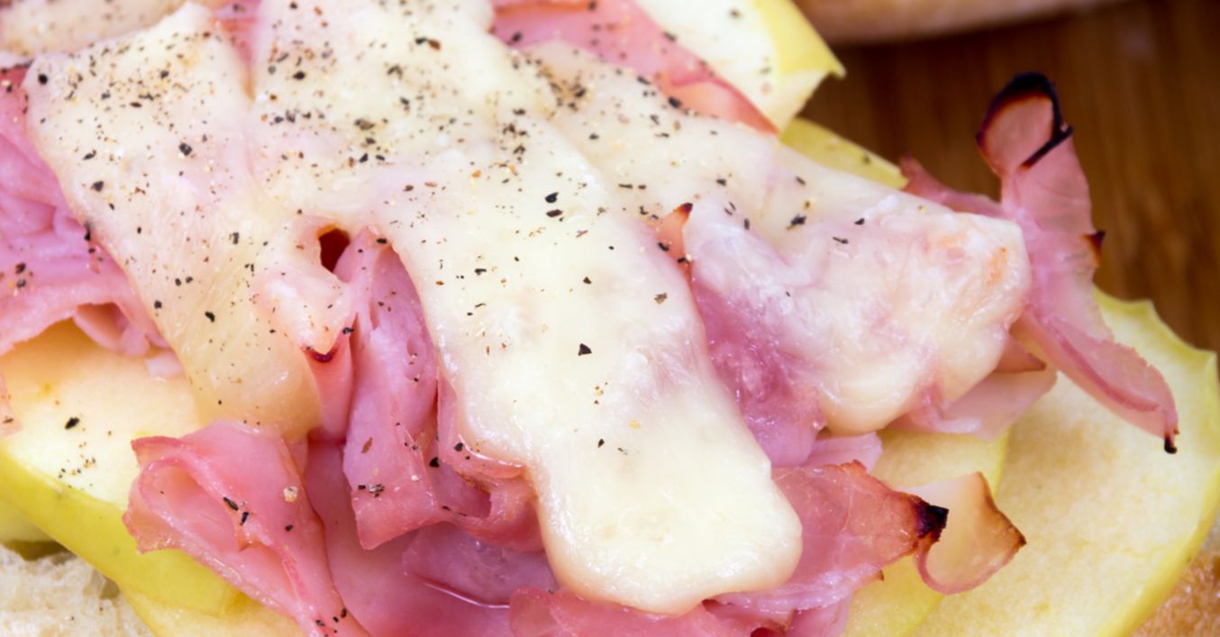 Se taie pâinica în două. Pe fiecare felie se pun: rondele de pară, felii de bacon și felii de cașcaval. Se presară piper și se introduc 2-3 minute în cuptor, la foc mic.