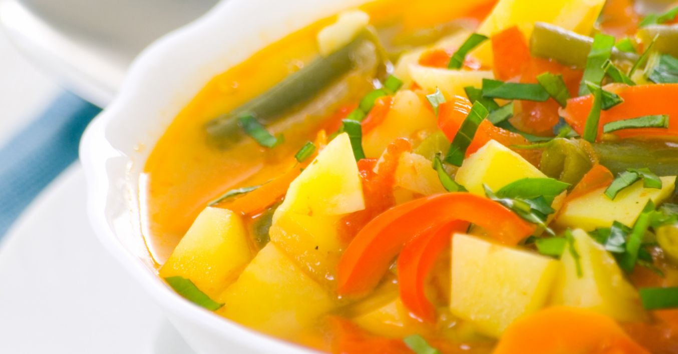 Se spală și se curăță legumele. Se taie după preferință. Se pune totul la fiert în 2l de apă, mai puțin cartofii.