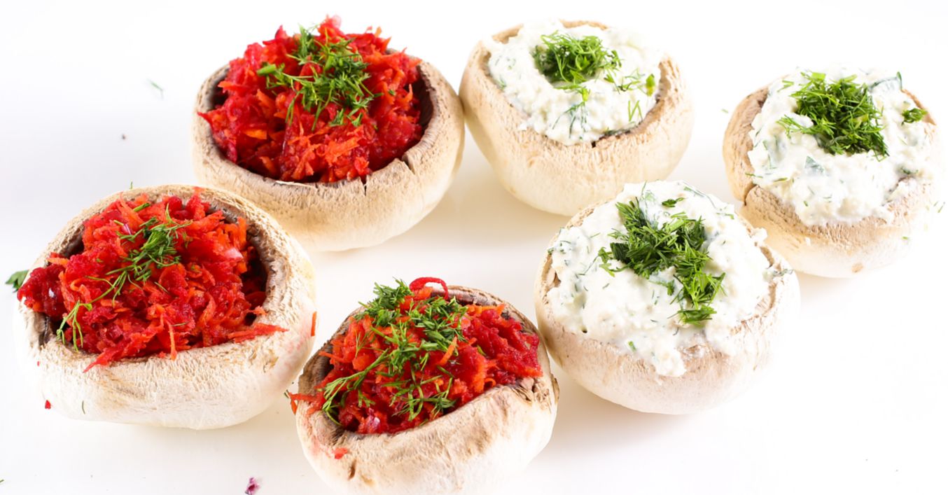 Ciuperci umplute cu brânză de caju și sfeclă roșie