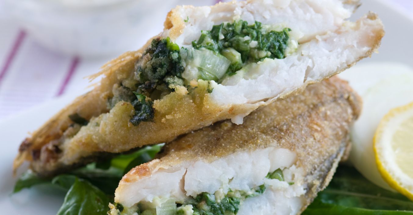 Se spală peștii și se taie în două. Se presară cu sare și piper și se umplu cu spanac. Se prăjesc în ulei bine încins.