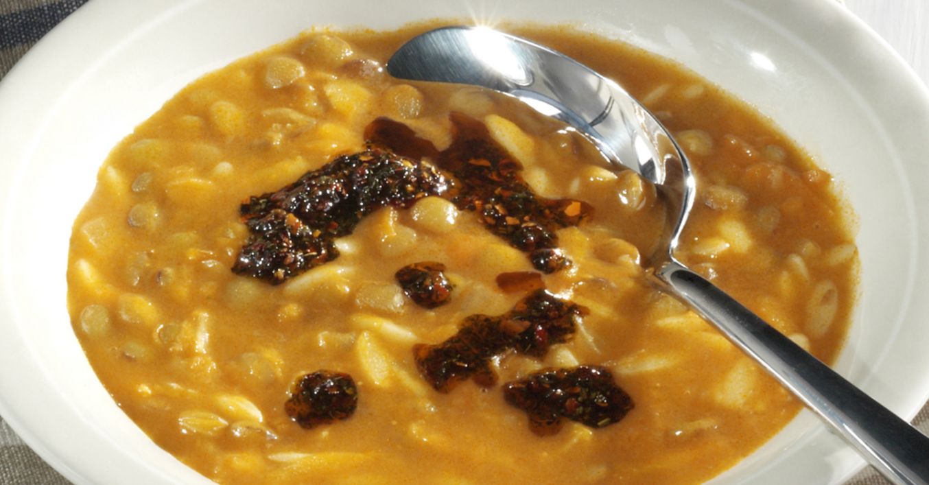 Se servește fierbinte ornat cu roșii uscate amestecate cu sos de soia picant.