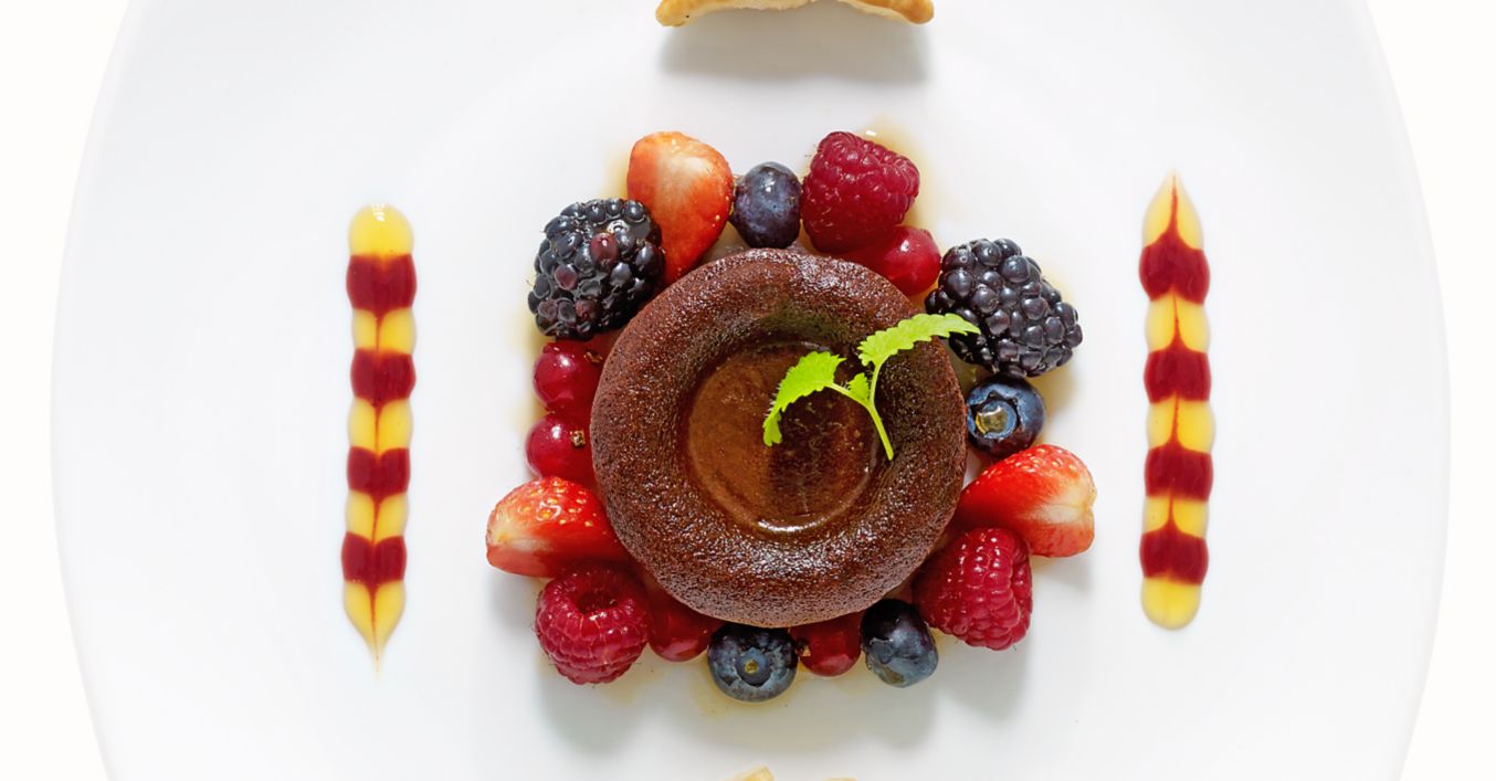 Desert cu ciocolată cu 2 tipuri de sos
