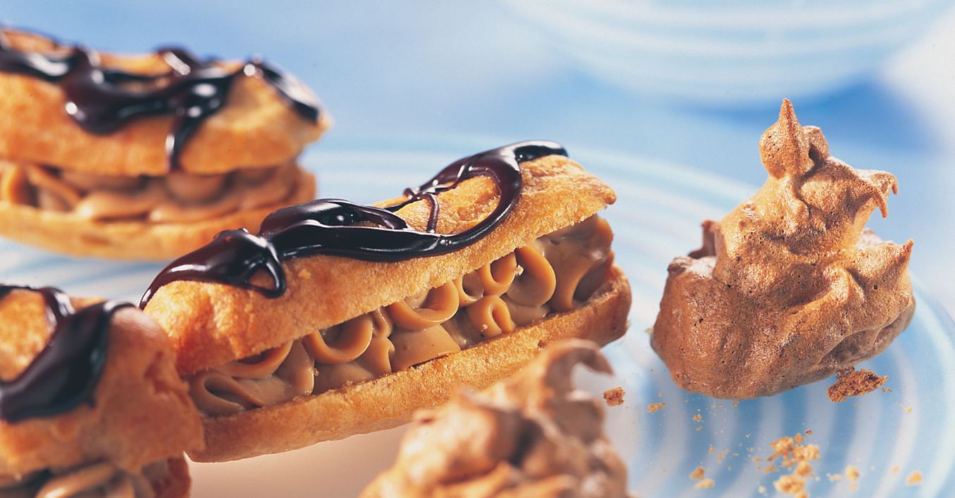 Se bate crema cu iaurtul degresat până se înmoaie și se umplu eclerurile cu ajutorul unui cornet cu vârf crestat.