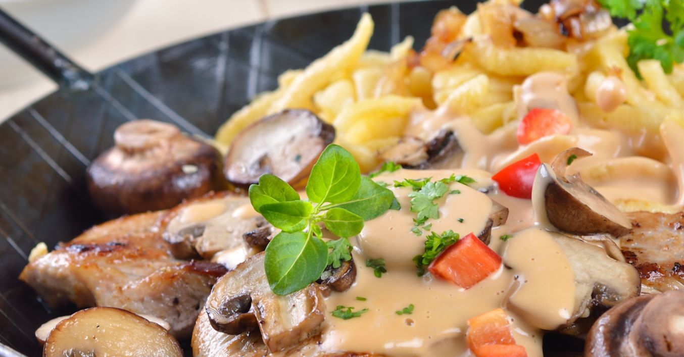 Într-o cratiță se topește untul, se adaugă usturoiul tăiat fin, apoi se pun ciupercile și se rumenesc puțin. Se adaugă carnea, vinul și supa caldă. Se lasă să scadă cam 30 minute.
