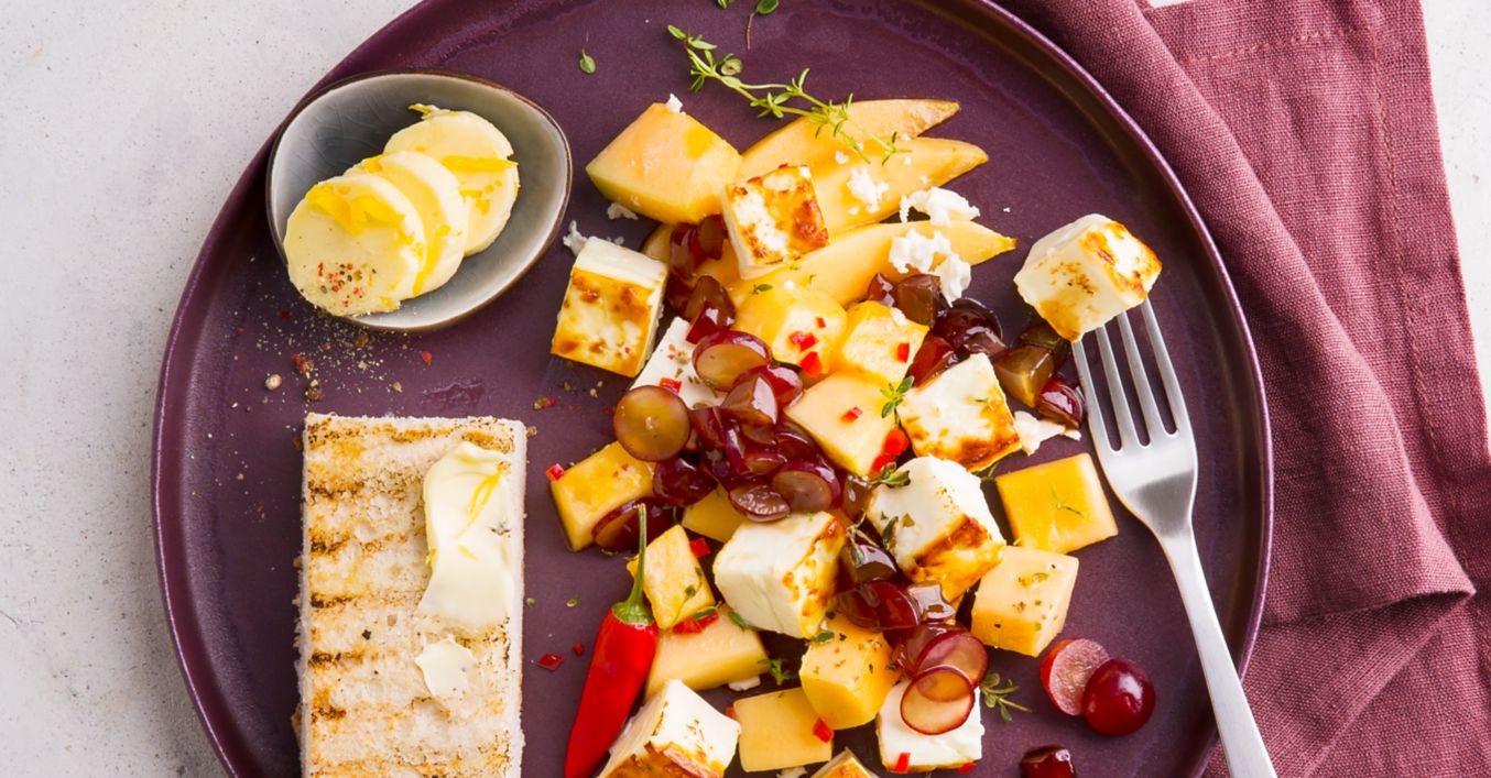 Feta la grătar cu fructe