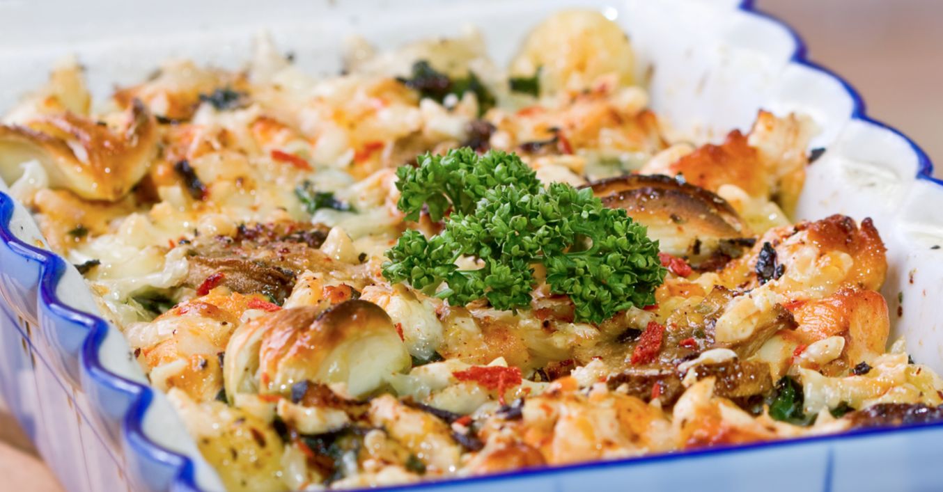 Gnocchi de casă la cuptor cu spanac și pui