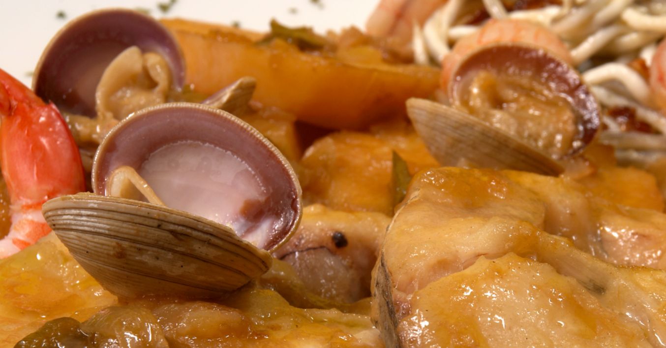 Se încing câteva linguri de ulei și se prăjeste ceapa tăiată solzișori. Se adaugă fructele de mare, usturoiul pisat și vinul. Se presară sare și piper și se lasă 10 minute să fiarbă pe foc moderat.