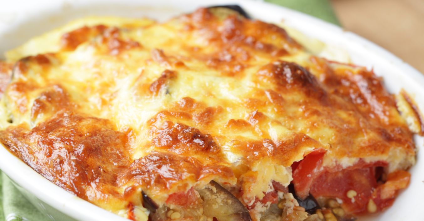 Se alege o formă potrivită ca dimensiuni, suficient de adâncă, pe care o ungem cu ulei. Se așază primul strat de vinete. Deasupra se toarnă umplutura de carne cu roșii și apoi din nou un strat de vinete. Urmează restul de carne, nivelând cu o spatulă pentru a se obține un strat uniform.