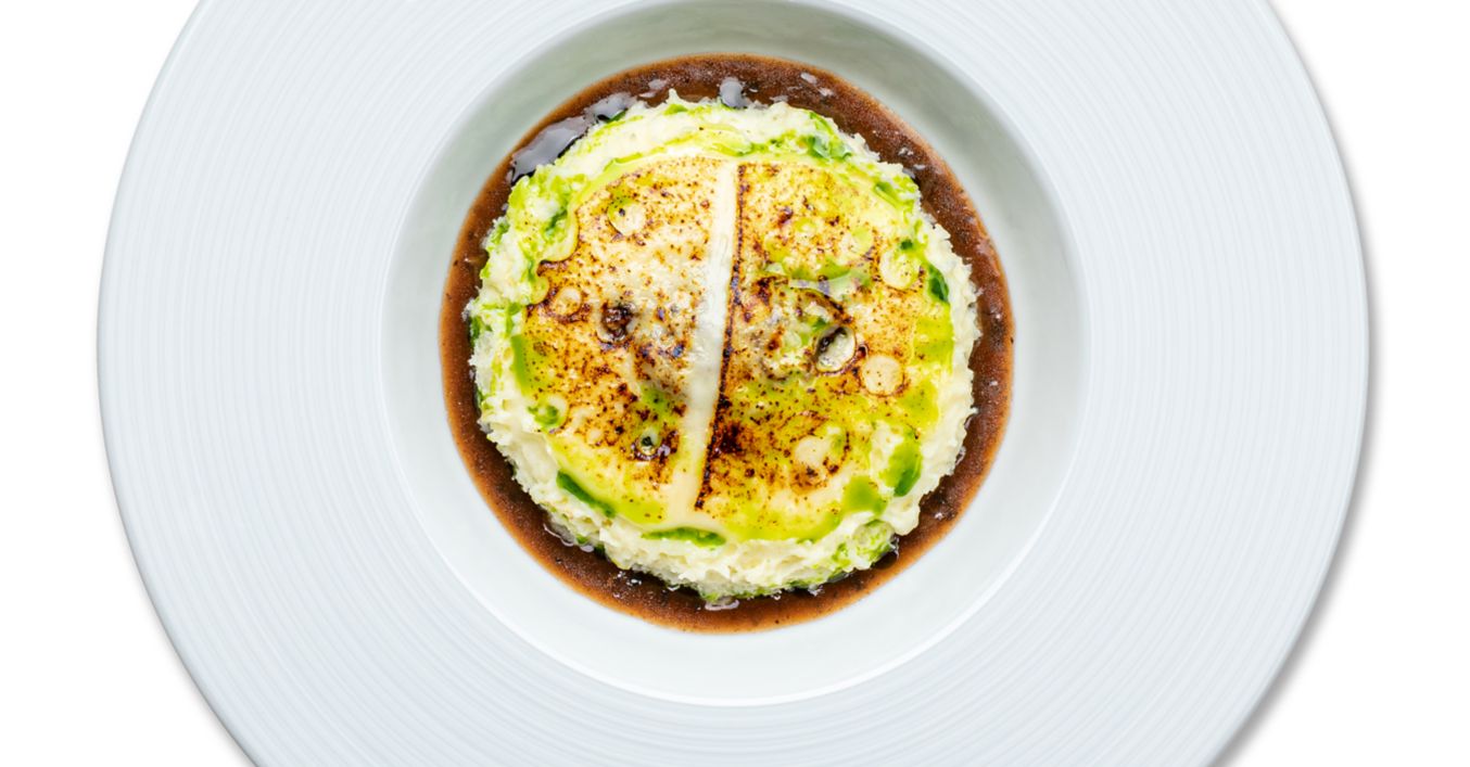 După ce aceasta a ajuns la o temperatură optimă, se rumenesc feliile de ceapă până se caramelizează apoi se adaugă carnea pentru a se rumeni pe toate părțile și se asezonează cu sare și piper, după gust. După ce carnea prinde o crustă arămie, se încinge cuptorul la temperatura de 180°C și se lasă pentru 5 minute. Între timp se pot pregăti cartofii: într-o oală mare se pun la fiert cartofii până se fierb foarte bine si se desprind singuri de pe coajă. După ce s-au fiert foarte bine, într-o oală se așează cartofii și cu ajutorul unui mixer se pasează până devin o pastă aproape lichidă. Peste cartofi se adaugă unt și puțin lapte ca să se obțină textura unui sos.