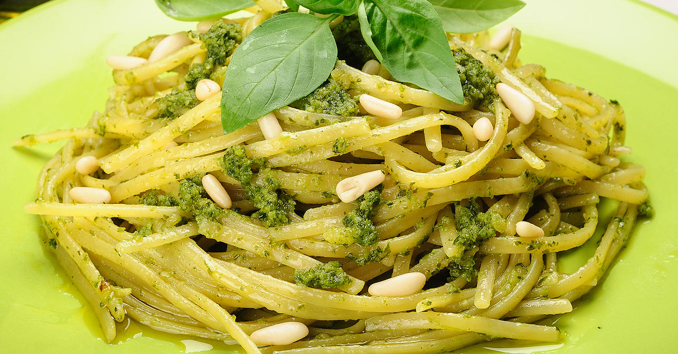 Se pun pe farfurii și se adaugă sosul pesto, parmezanul și muguri de pin.