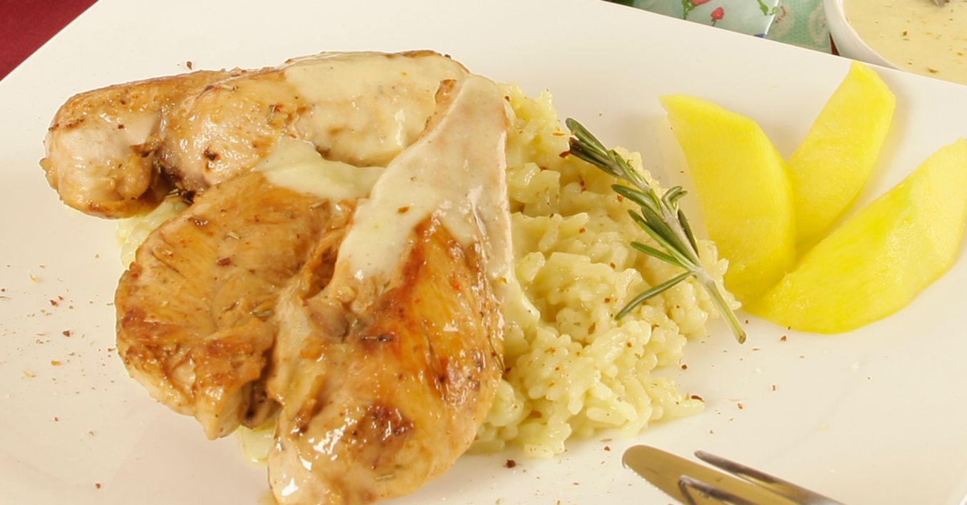Piept de gâscă în sos de mango