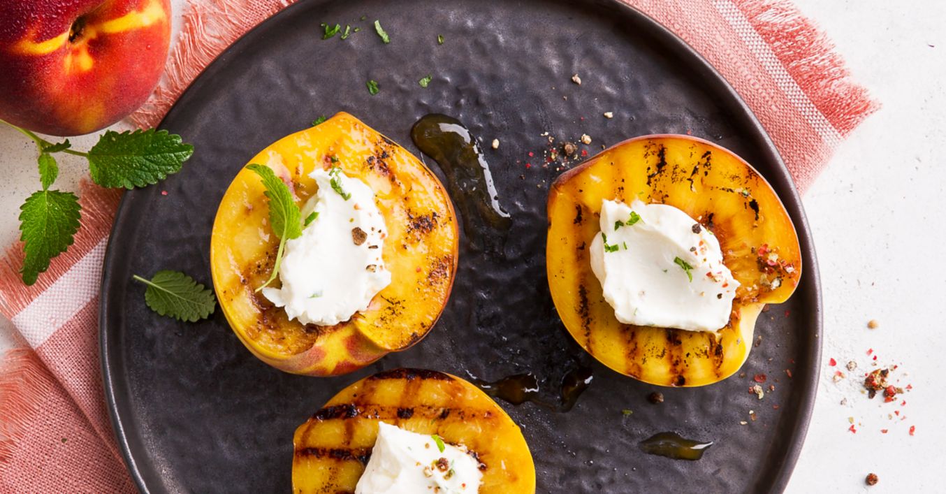 Piersici coapte la grătar cu topping din brânză