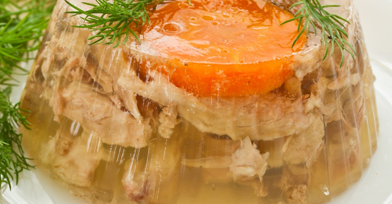 Carnea, şoriciul, urechea, fierte se distribuie în vase şi apoi se toarnă zeama pentru a se răci si solidifica.