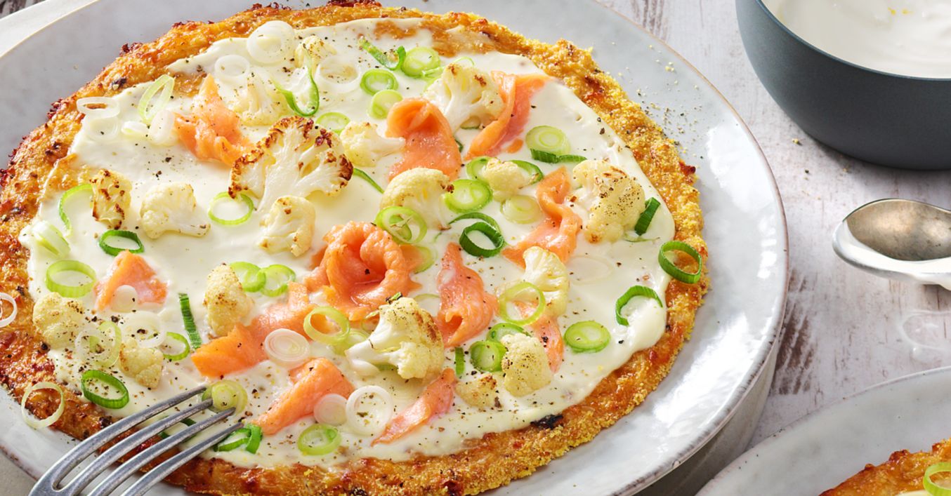 Pizza cu conopidă și somon