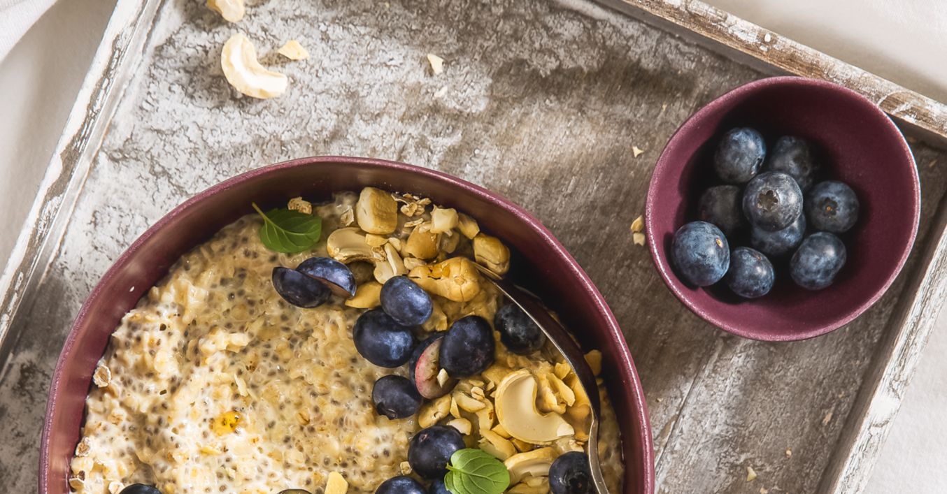 Porridge (terci de ovăz) cu afine și caju