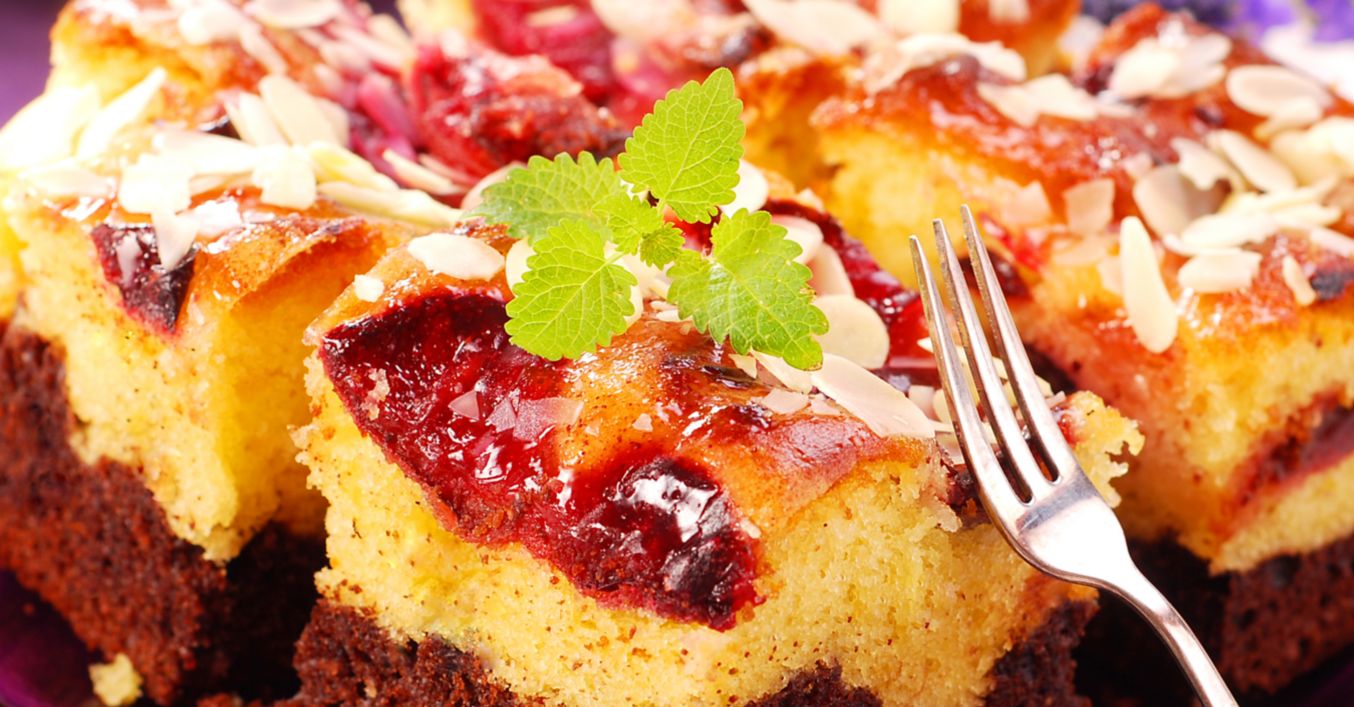 Se scoate tava și se adaugă și cel de-al doilea strat, deasupra căruia se presară prunele întregi sau înjumătățite.