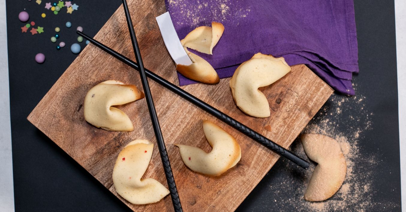 Se scot din cuptor, se umplu rapid cu răvașele, se pliază, se pune partea închisă peste marginea unui pahar și se apasă ușor cele două capete pentru a crea forma tipică.