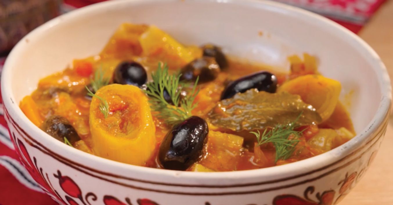 Completam apoi cu sucul de rosii si maslinele si mai lasam sa fiarba inca 10-15 min.