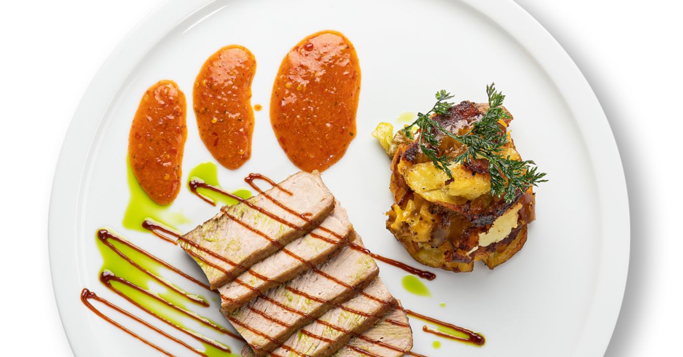 Pulpă de porc cu cartofi zdrobiți