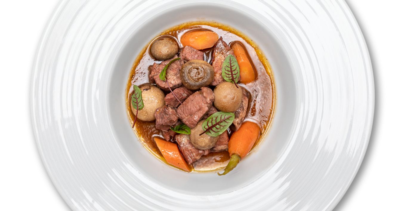 După ce legumele sunt aproape gata, se pot adăuga în tava unde s-a preparat carnea. Toată compoziția rezultată se amestestă pentru încă una-două minute, până când sosul se va îngroșa, iar carnea și legumele vor căpăta un aspect lucios și o consistență vâscoasă.