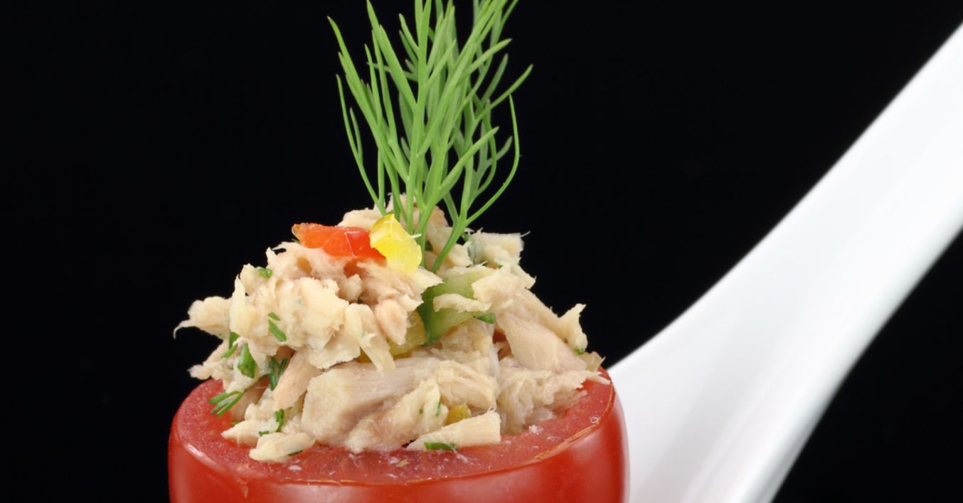Se scoate tonul într-o strecurătoare. Se fărâmă ușor și se adaugă puțin piper și mărar tocat. Se stropește cu suc de lămâie și ulei de măsline. Se amestecă ușor.