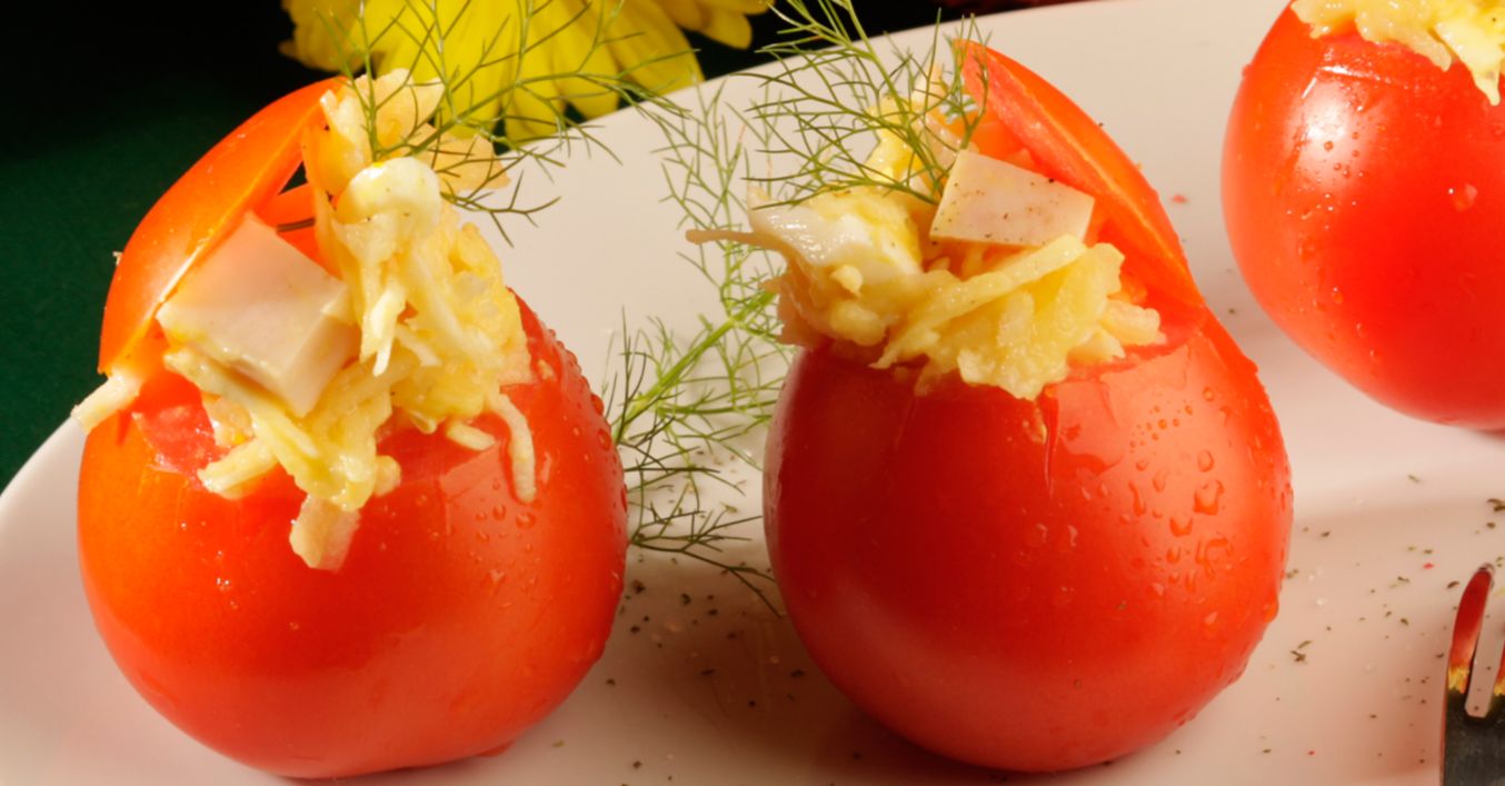 Alegi roșii coapte, dar tari, pe care le speli și le tai câte un căpăcel. Cu ajutorul unei lingurițe, îndepărtezi atent miezul roșiilor, apoi le pui la scurs cu tăietura în jos.