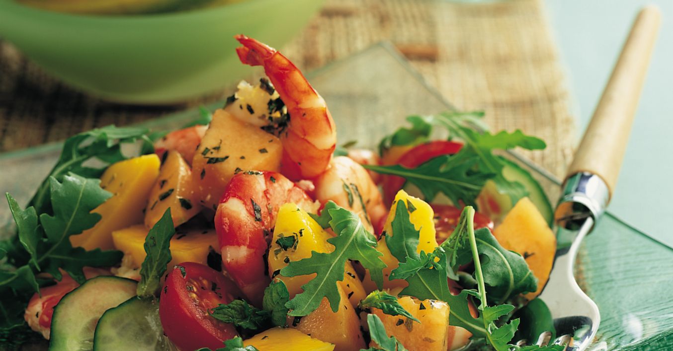 Salată de creveți, pepene și mango