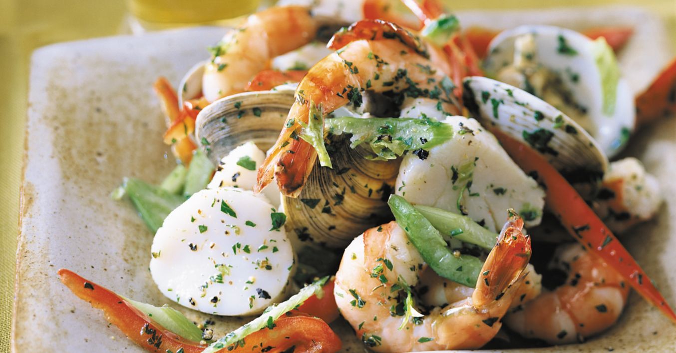 Salată de fructe de mare cu sos de lămâie și verdețuri