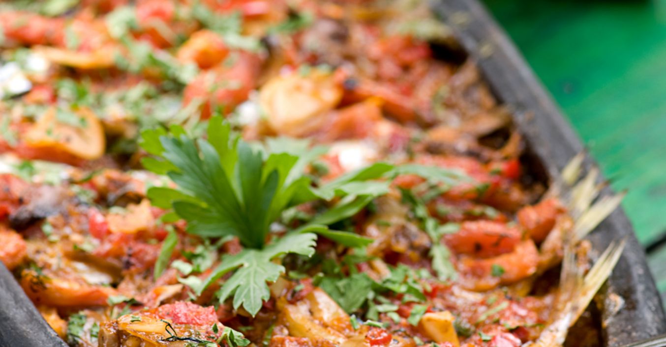 Peștii spălați și curățați se pun într-un vas termorezistent, formându-se un pat peste care se toarnă amestecul de legume. Se presără ardeiul iute tăiat rondele și usturoiul pisat. Se toarnă vinul, se presară pătrunjel tocat și se coace 40 minute la foc moderat. La final se mai adaugă frunze de pătrunjel tocat.