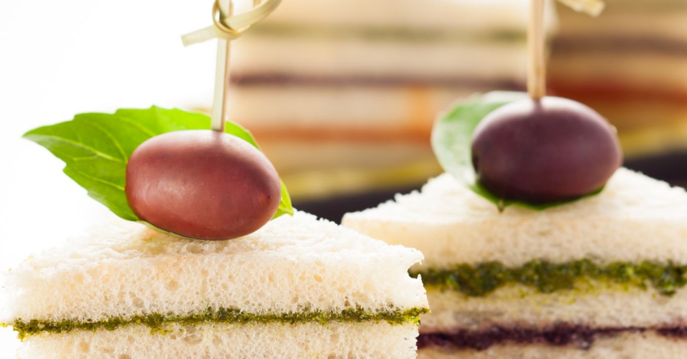 Se întinde pastă de diferite feluri pe feliile de toast. Se pun unele peste altele, alternând sortimentele.