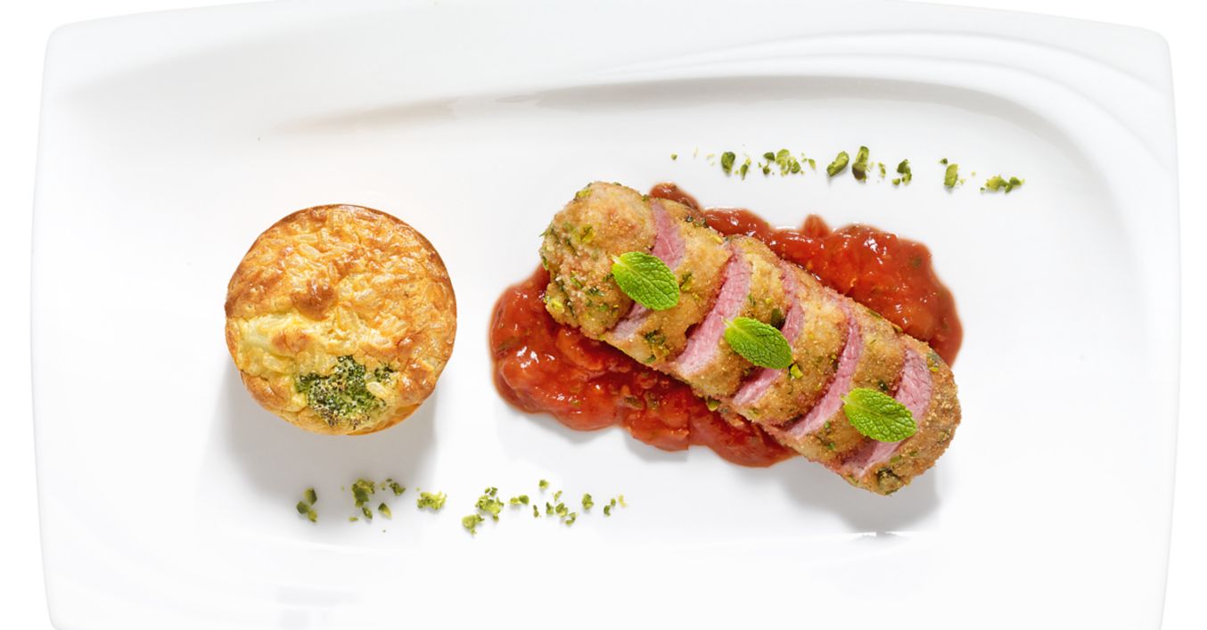 Spată de miel în crustă de fistic și mentă