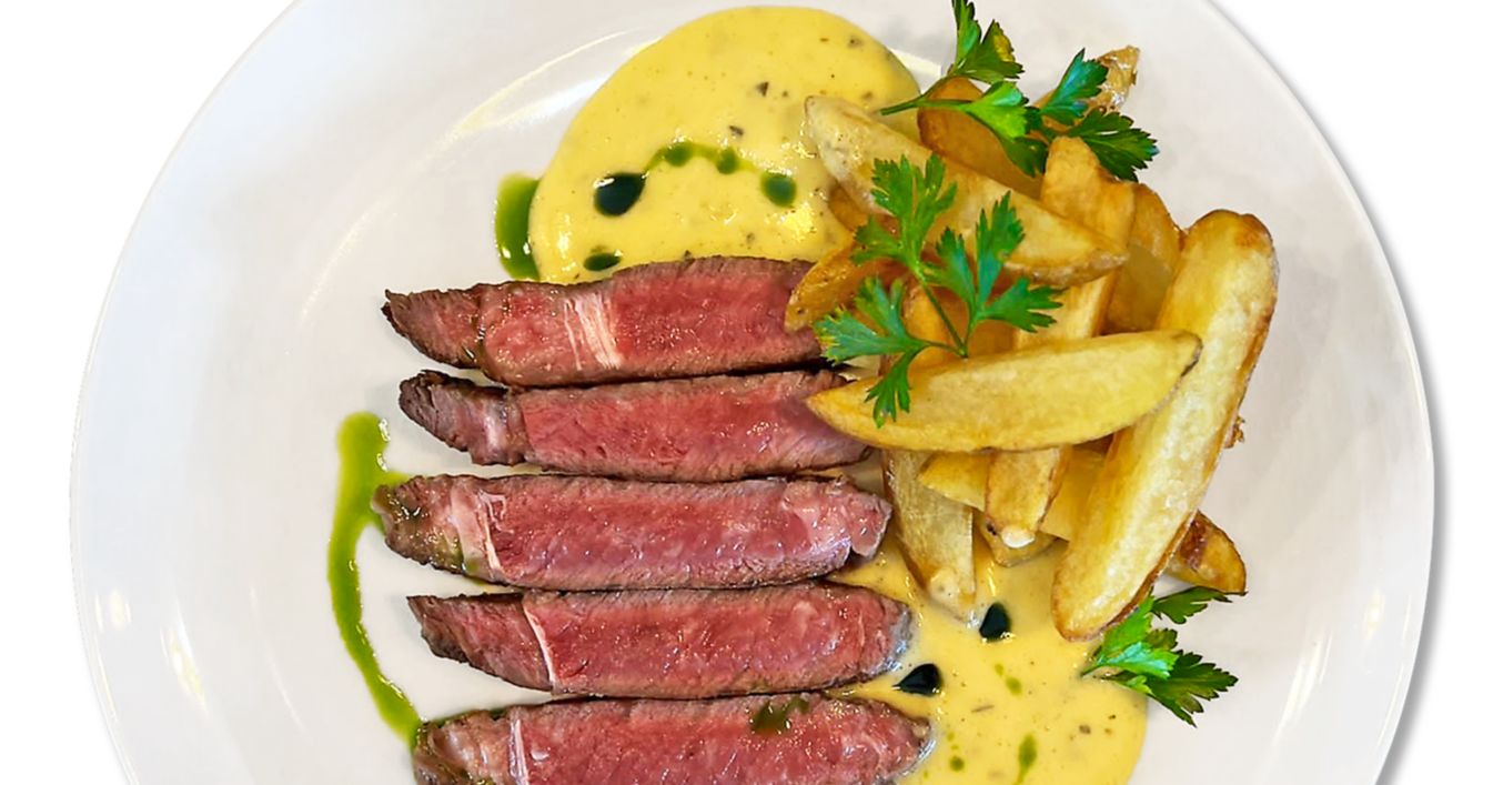 Înainte să se porționeze carnea pentru mai multe persoane, steakul de rib-eye se scoate din frigider și se lasă afară la temperatura camerei pentru a se frăgezi. Între timp se pregatesc cartofii. Se spală, apoi se curată și cu ajutorul unui tocător de lemn se taie cartofii în fâșii după care se prăjesc într-o baie de ulei până devin crocanți.