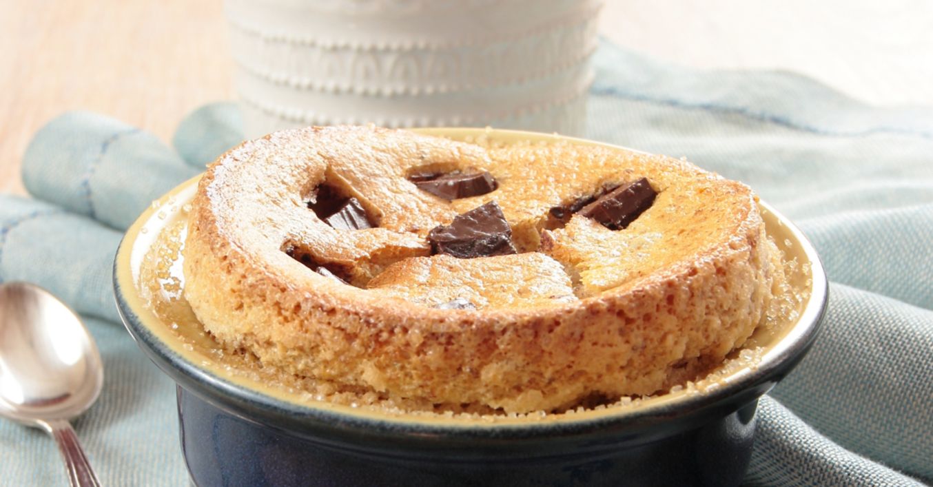 Se pune compoziția în forma unsă cu unt. Ciocolata se rupe în bucăți și se presară deasupra.