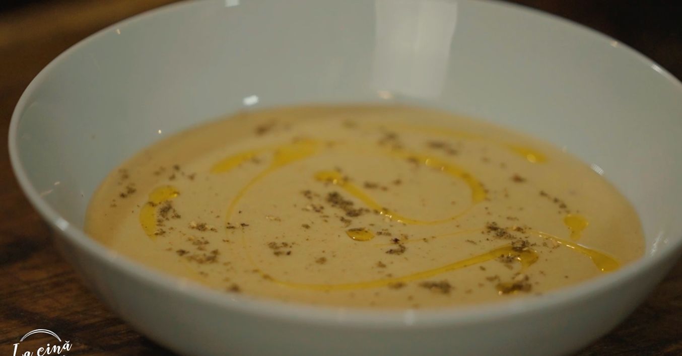 Condimentăm supa cremă cu sare, piper, puțină nucșoară și opțional, ulei de măsline.