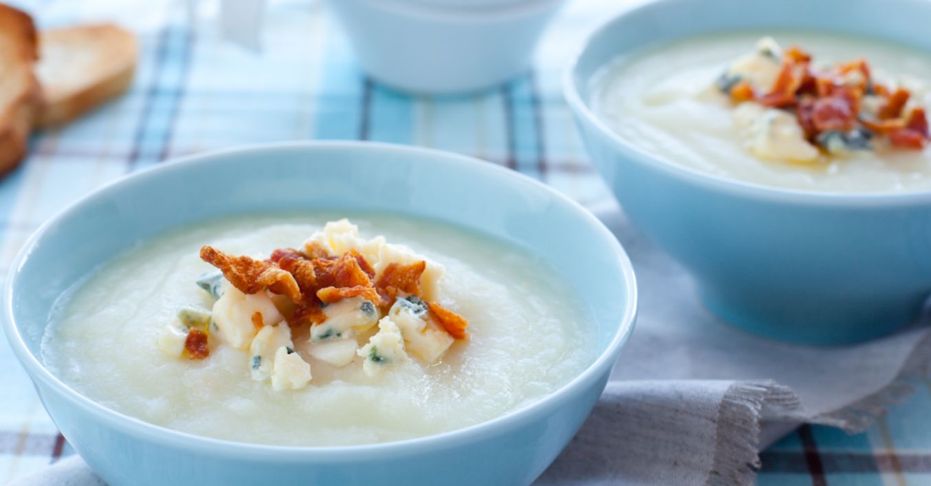 Supă cremă de conopidă cu gorgonzola și cu bacon