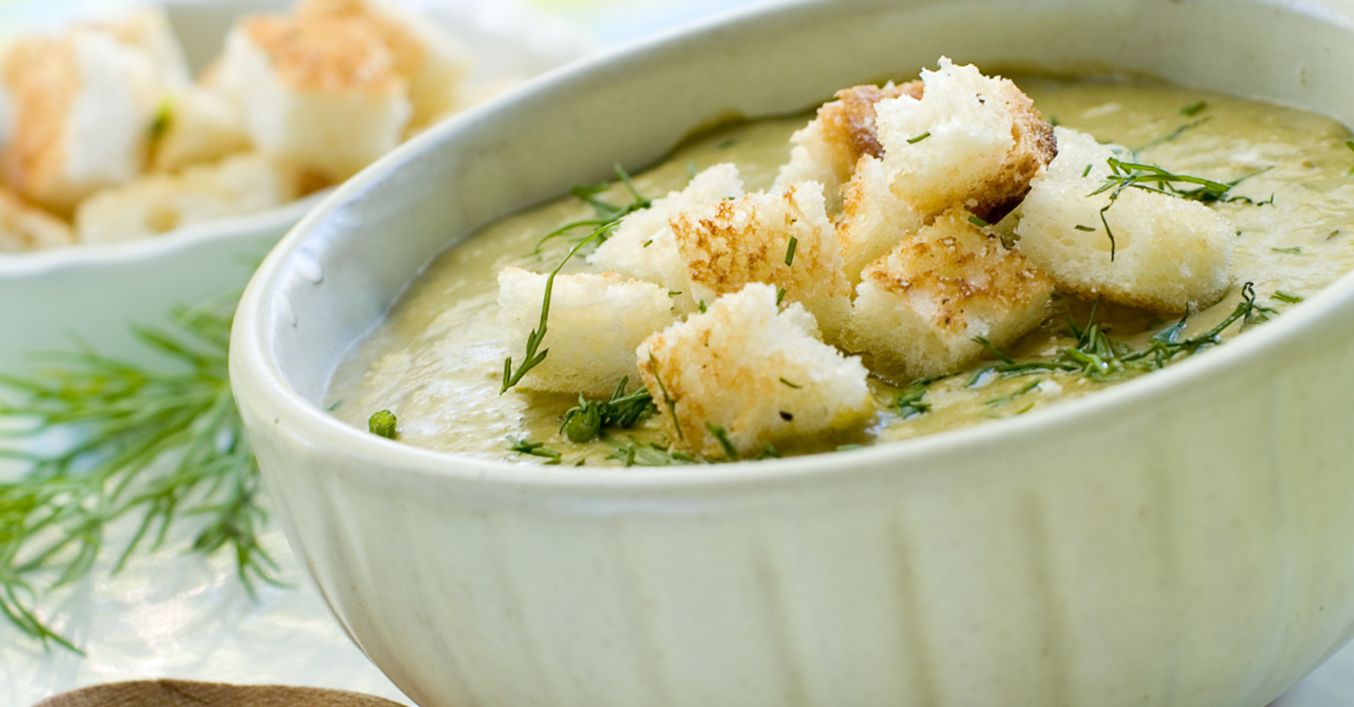 Se servește fierbinte cu crutoane, ornat cu mărar proaspăt.