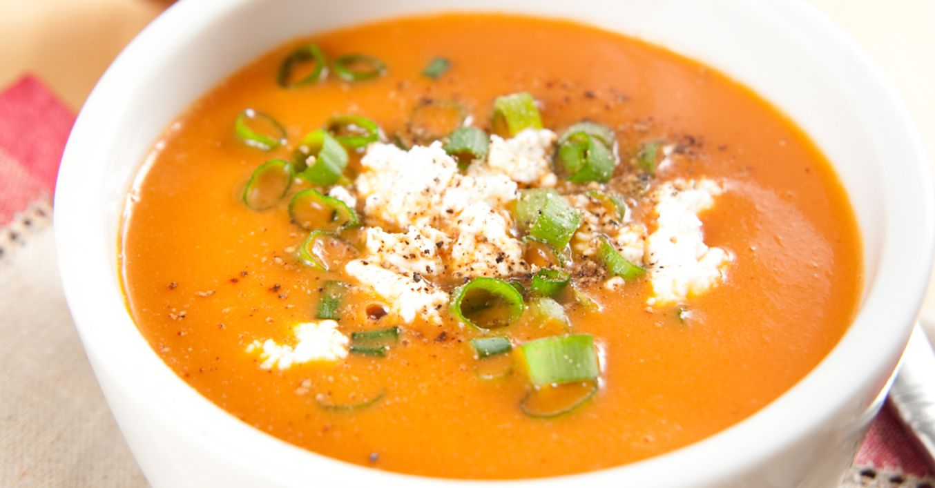 Se servește fierbinte presărat cu fărâme de brânză și rondele de ceapă.
