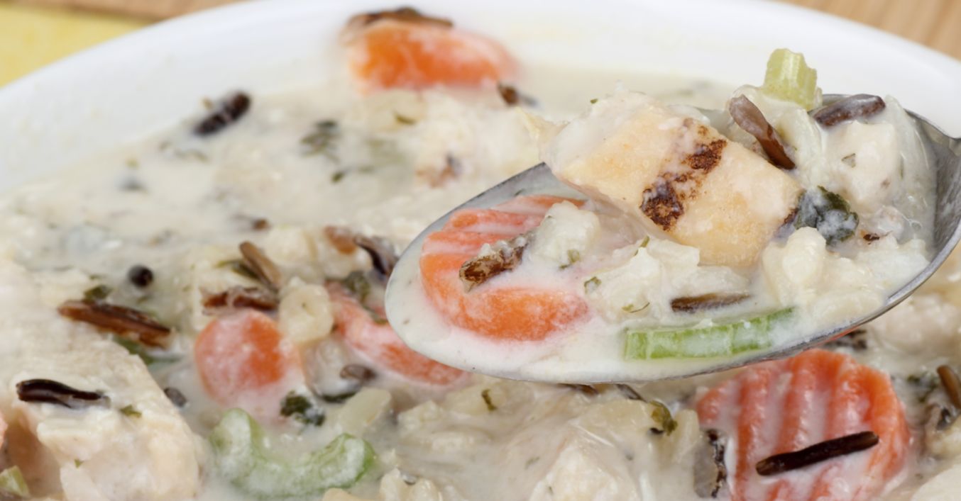 Se curăță și se taie toate legumele. Se pun la fiert împreună cu orezul și aripioarele de pui, în 2 l de apă. Se fierb 60 minute.