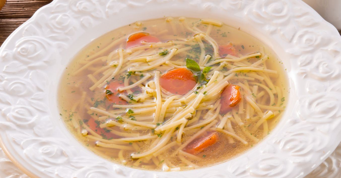 După ce au fiert și carnea și legumele, se strecoară supa într-o oală curată. Legumele se păstrează în supă. Se fierb tăiețeii separat în apă cu sare, conform instrucțiunilor de pe pachet și se adaugă ulterior în supă. Se potrivește supa de sare și piper după gust. Se servește cu pătrunjel verde tocat proaspăt.