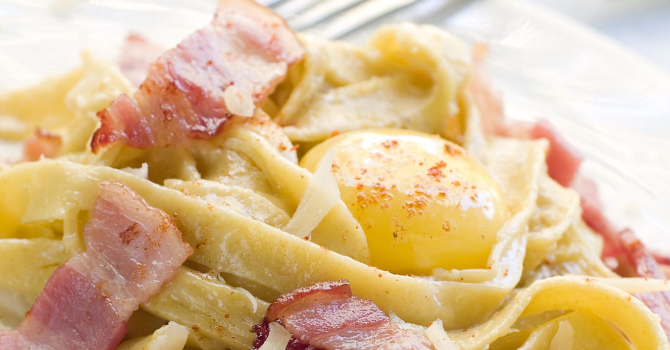 Tagliatelle cu bacon și ou