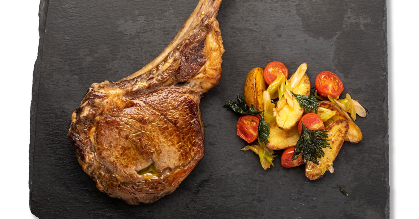 Se scoate tomahawk-ul din frigider cu 30 minute înainte și se păstrează la temperatura camerei înainte de a fi gătit pentru frăgezire. Se încinge o tigaie în care se adaugă o linguriță de unt si se adaugă carnea care se frige pe toate părțile. După ce friptura capătă o crustă aurie, se adaugă ceapa albă tăiată în patru și pentru un gust aromat se adaugă și cimbrul. Carnea se acoperă cu sosul obținut.